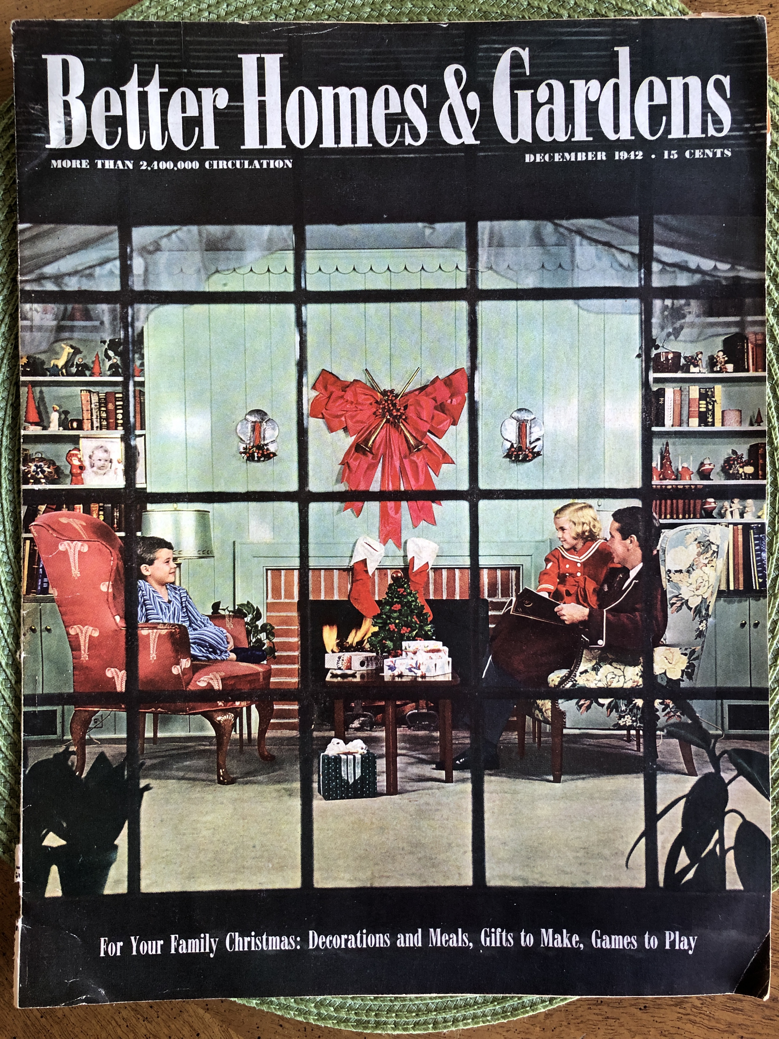 The December 1942 issue of “Better Homes and Gardens” has seven menus! I’ll list one of them here, but I hope to try out one or two of them before the month is over. Each menu lists a main dish, vegetables, a salad and/or accompaniment, a dessert, and something else that would be nice to add to the meal. I found these menus to be more housewife friendly.