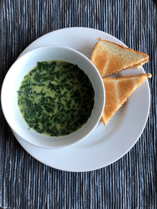 The spinach soup was warm and creamy. If you like spinach, chances are you’ll enjoy this soup. It’s not incredibly filling, so I was appreciative of the toasted peanut butter sandwiches. I thought the nuttiness and slight crunch of the toasted sandwiches went well with the soup.
