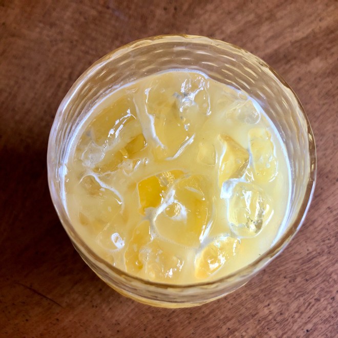 I left the mint in the pitcher and strained as I was pouring the drink into the glasses. I’m hoping that the longer this drink chills, the more mint flavor it will have. The addition of carbonated water made this taste and feel like a sparkling orange juice and the lime juice gave it a nice little kick. I would definitely pour myself a glass of this and hang out on my patio watching the birds play in the bird bath or the kids build sandcastles. Again, adjust the amount of carbonated water to suit your tastes. Enjoy!