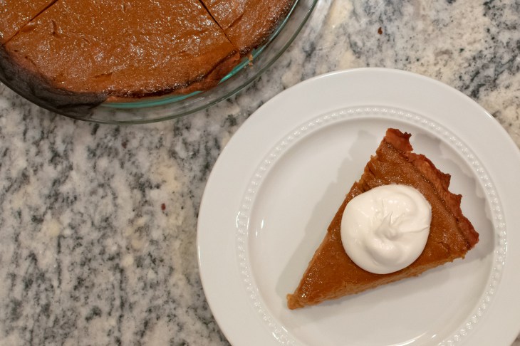 I wanted to include a ration recipe on our Thanksgiving menu. I think many home front housewives would have been concerned with having enough sugar for their holiday baking, so I decided to use a pie recipe. This pumpkin pie is from the 1944 edition of The Good Housekeeping Cook Book. There were three pie recipes in a section called “Pies that Save Sugar,” including this Golden Pumpkin Pie and its maple-flavored variation. We made the maple version, but I thought you might want to have the Golden Pumpkin Pie recipe, as well.
