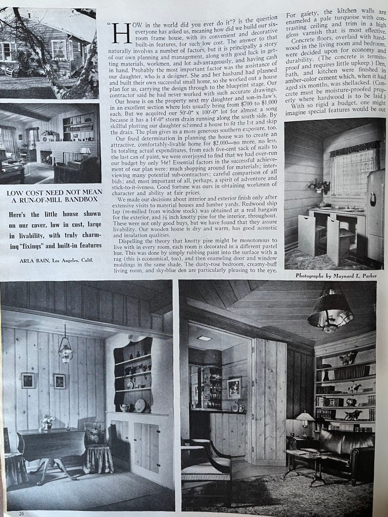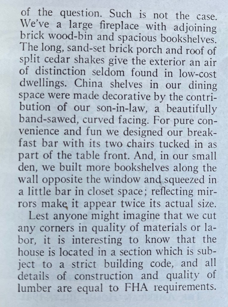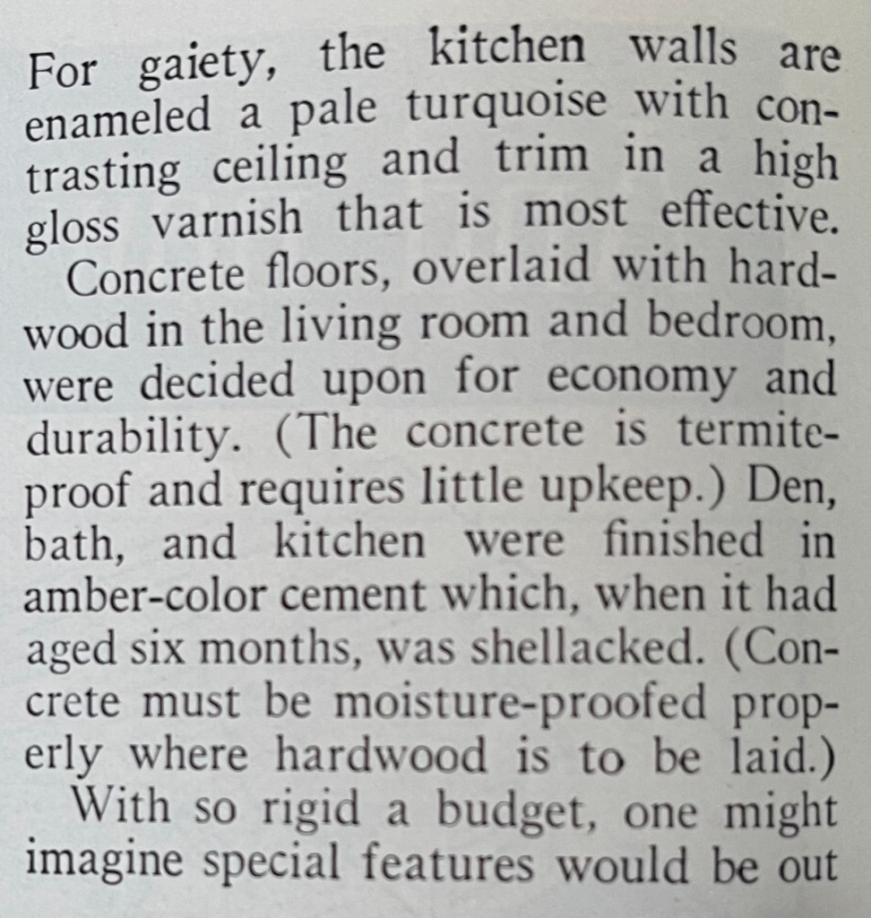 This home was obviously carefully budgeted and it is apparent from the article it cost less than a typical new build in 1941. There were some cleverly designed details, like the breakfast bar pictured above, and there was some creative budgeting applied to make this home affordable. There also were some nice touches that were surprising in a budget home.