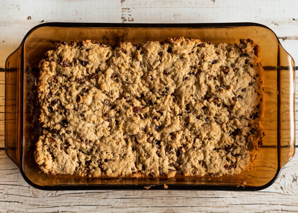 These were dry, but tasty. They were really crumbly and broke apart easily as I was cutting them into squares. Everyone who tried them liked them, though. The amount of dates and nuts was perfect for the recipe—often I think there are too many. I think these squares would be terrific with ice cream!