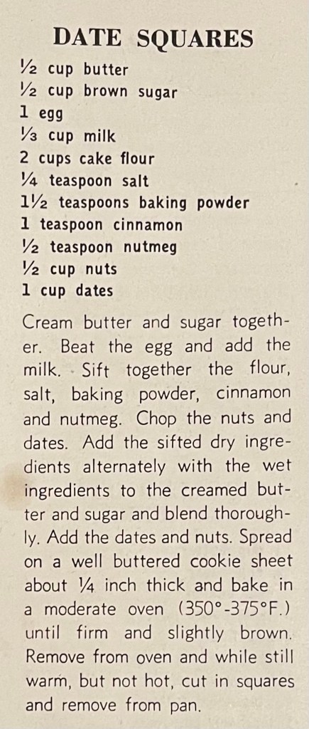 These date squares come from the Culinary Arts Institute’s 1941 edition of The Cookie Book.