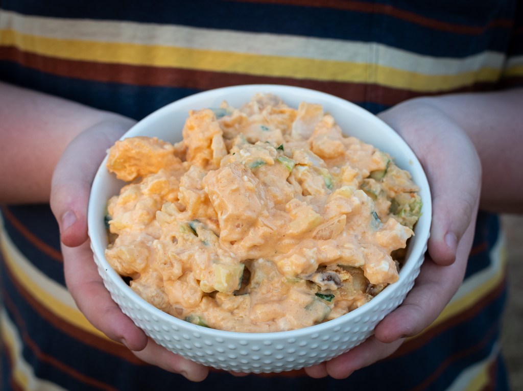 I like potato salad. I like it a lot. I think it’s an overlooked dish that isn’t just for picnics. I’m not sure I’ve ever had a potato salad with French dressing, though. It won’t be the last time either! This was delicious! The dressing really adds a nice flavor to the dish and a nice color to your table. If you make this, note that the ingredients need to be chilled and marinated.