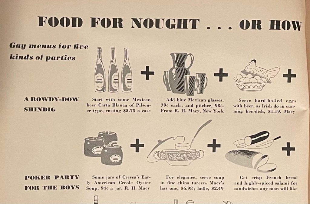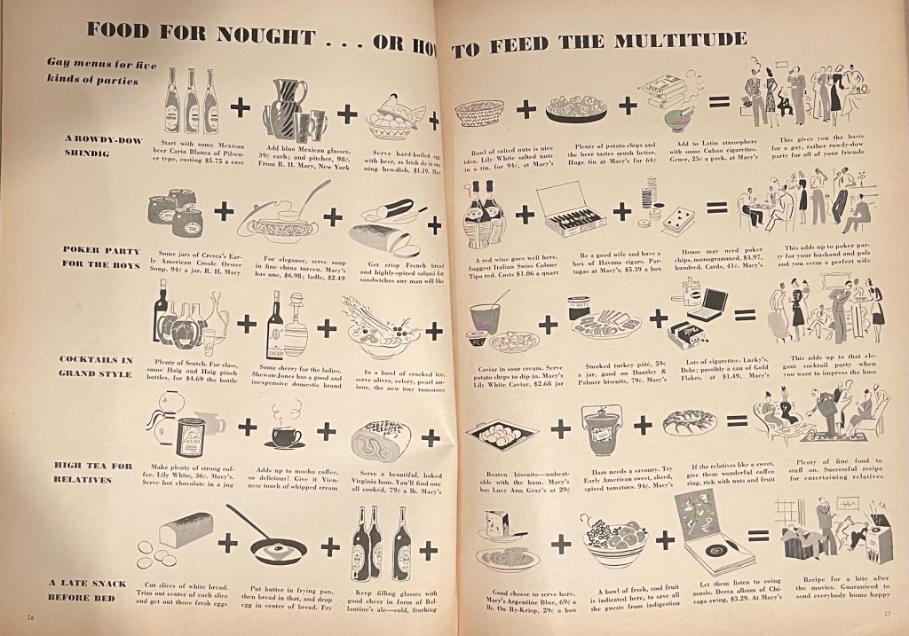 Sometimes it’s nice to take a peek at life before the United States was officially at war. This article from the December 1940 issue of Glamour gives us recipes for planning a terrific party.