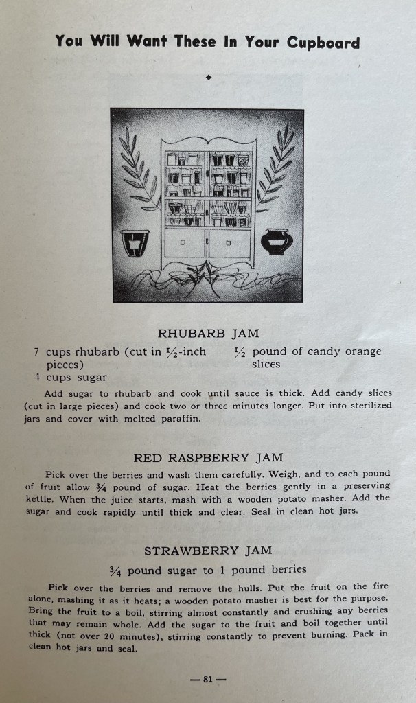 You don’t have to have your own garden to make delicious homemade jams. A trip to your local grocery store or farmers’ market can provide you with all the goodies you need to can your own jams and jellies. Here are a few recipes to start with from Your Gas Range Cook Book, published in 1940 by the Wyandotte County (Kansas) Gas Company’s Home Service Department.