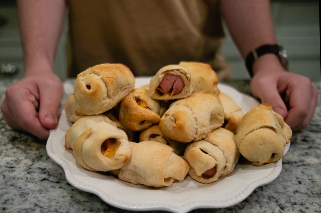 If you’ve ever had pigs-in-a-blanket, this is pretty much the same thing. I really liked the addition of mustard and cheese. Next time I think I’ll also try pepper jack cheese to give the rolls a little kick of heat. All of my taste testers enjoyed the rolls and they all came back for seconds. Buying frozen bread dough ensured these were speedy to make. You can always substitute sausage for the hot dogs if you want to change things up a bit. These rolls would also be easy to take to a potluck or to make for a Super Bowl party.