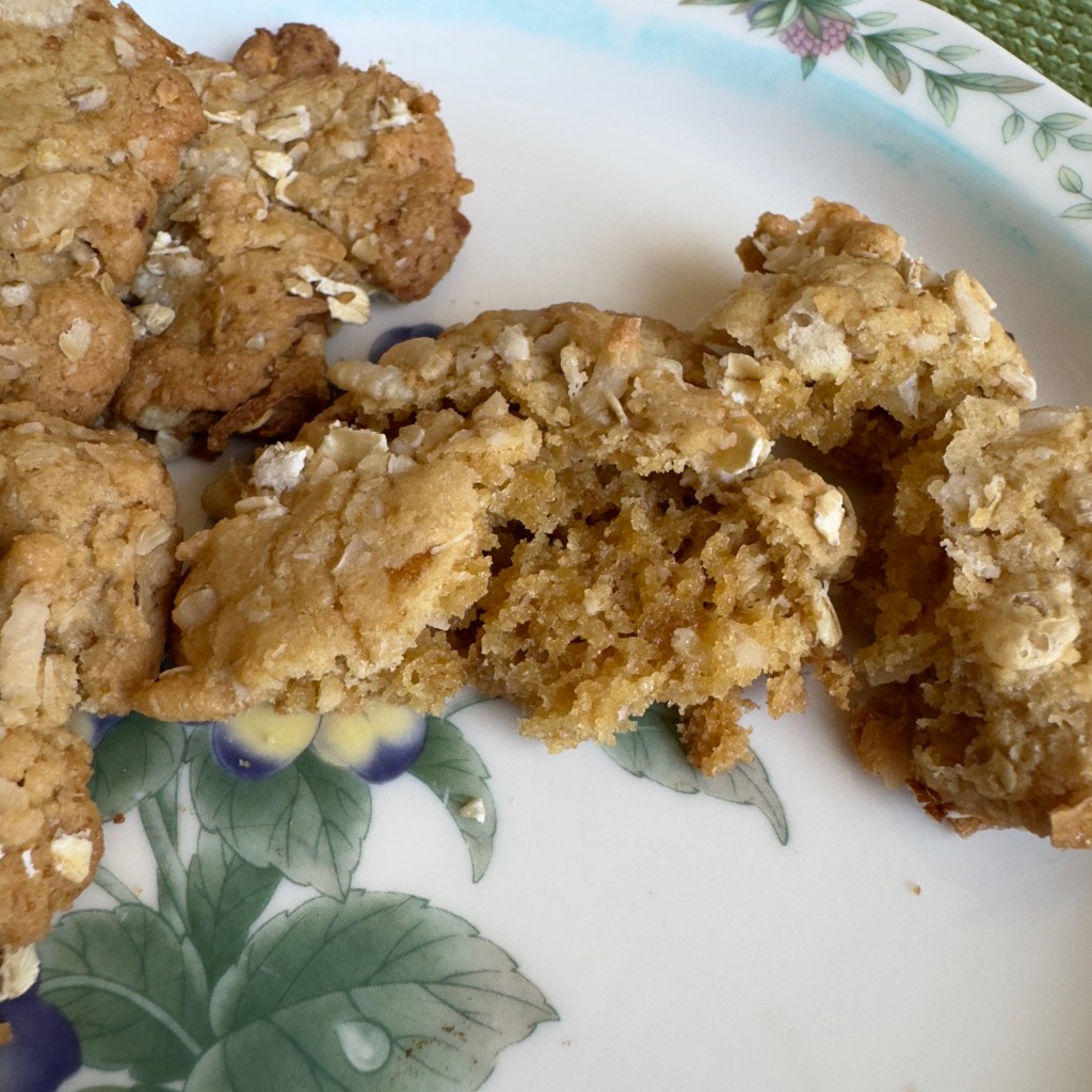 The cookie mixture didn’t want to stick together very well, and even after baking they were pretty crumbly. They were delicious enough, though, that I’ll ignore the slight mess they made. The outside was crisp but the inside was moist and soft. They had a sweet oatmeal flavor and even the pickiest member of my taste-testing crew came back for more. I’d definitely make these again.