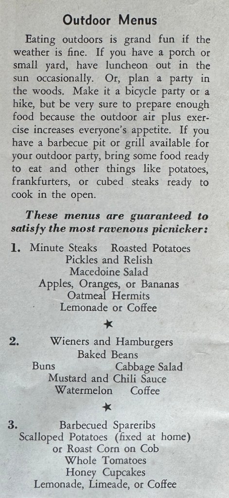 Here are their menu suggestions for outdoor meals.