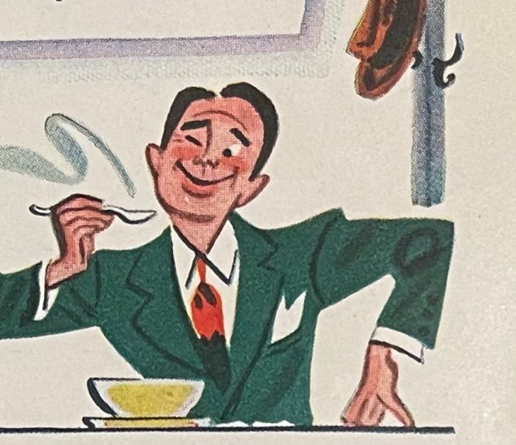 This advertisement for Campbellās soup from the autumn of 1945 includes a menu for a…